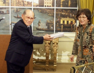 おめでとうございます。 平成20年8月4日 宮崎の「たんちゃん」こと 田上蒼生子様(89歳)は 第八回ニューエルダー シチズン賞の 読売新聞社賞を 受賞されました。 (当日日野原先生と) |