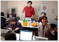 「インターネットで広がるおばあちゃん達の青春PartⅢ」を 富士通パーソナルズK.K.と一緒に開催、 コンピューター おばあちゃんの会は「パソコンで楽しく遊ぼう!」を会員たちが担当しました。 |