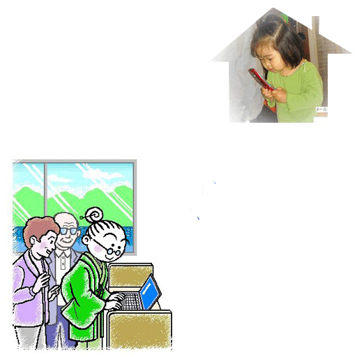 | ■ 出先からの安全なメール送受信サロンを開きました。 駅から、ホテルから病院から、インターネットカフェから 「お土産なにがいい?」 「バーバ!!」 |
