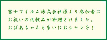 | ■ | 平成13年4月8日 新宿ホテルセンチュリーハイアットにて コンピューターおばあちゃんの会発会4周年記念パーティ開催 |