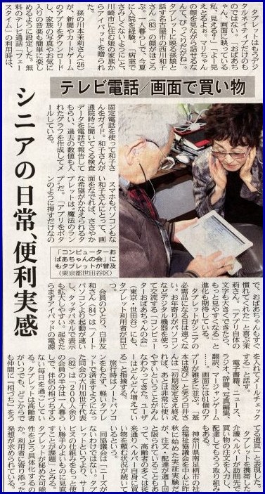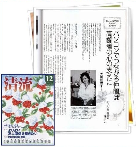 | 2012年「清流」誌12月号”よりよい友人関係を築きたい” パソコンでつながる仲間は高齢者の心の支えに |