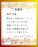 賞状 「肩がこったで賞」を頂き、 賞品に肩を揉んでもらいました。 学生サポーターの皆さん、ご苦労さまでした。 |