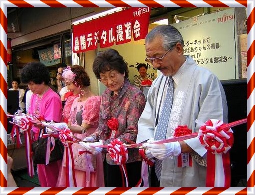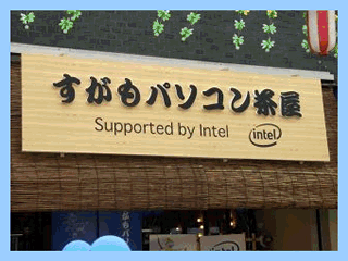 | 19年7月26日から29日まで巣鴨地蔵 通り商店街で和風インターネットカフェ 「すがもパソコン茶屋」 をインテル社共催で開きました。500人超の お客様、多勢の取材陣で賑やかに終了致しました。皆様本当に有難うございました。 |