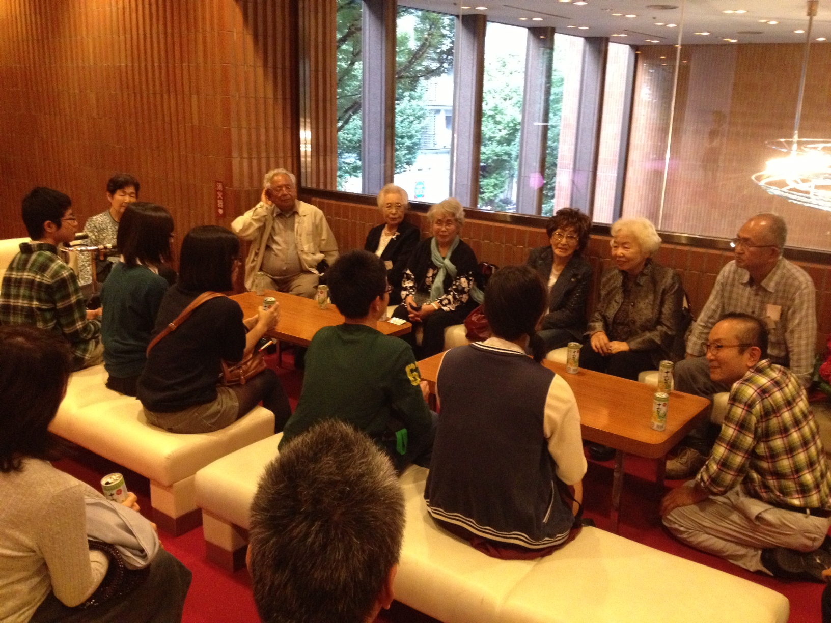 | 平成26年10月12日新宿文化センターで 音楽座ミュージカル「メトロに乗って」観劇後 中高校生と爺婆のコラボ 「昭和を語る」 を開きました。 |