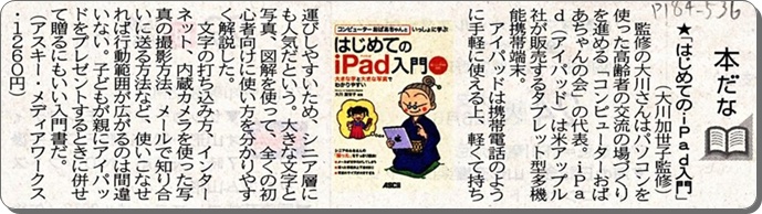 | 24年7月1日 時事通信書評 山形新聞 「初めてのiPad入門」掲載 |